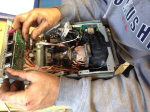 Und so stehen Tommy und ich gemeinsam dort mit dem Fernseher in der Hand und wir öffnen vorsichtig das Gehäuse. Mein Bruder wirft einen geübten Blick auf die Platinen, Transistoren und die Bildröhre. Ich bin sehr gespannt auf seine fachkundige Meinung. Er lässt sich Zeit mit seinem unfehlbaren Urteil und sagt dann, „Hmm joa, weiß ich jetzt auch nicht…“