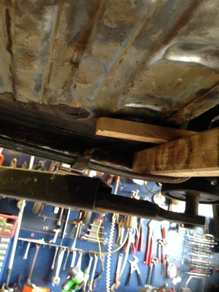Wenn man keine Lust hat, die Bremsleitungen auszubauen, greift man zum Kantholz