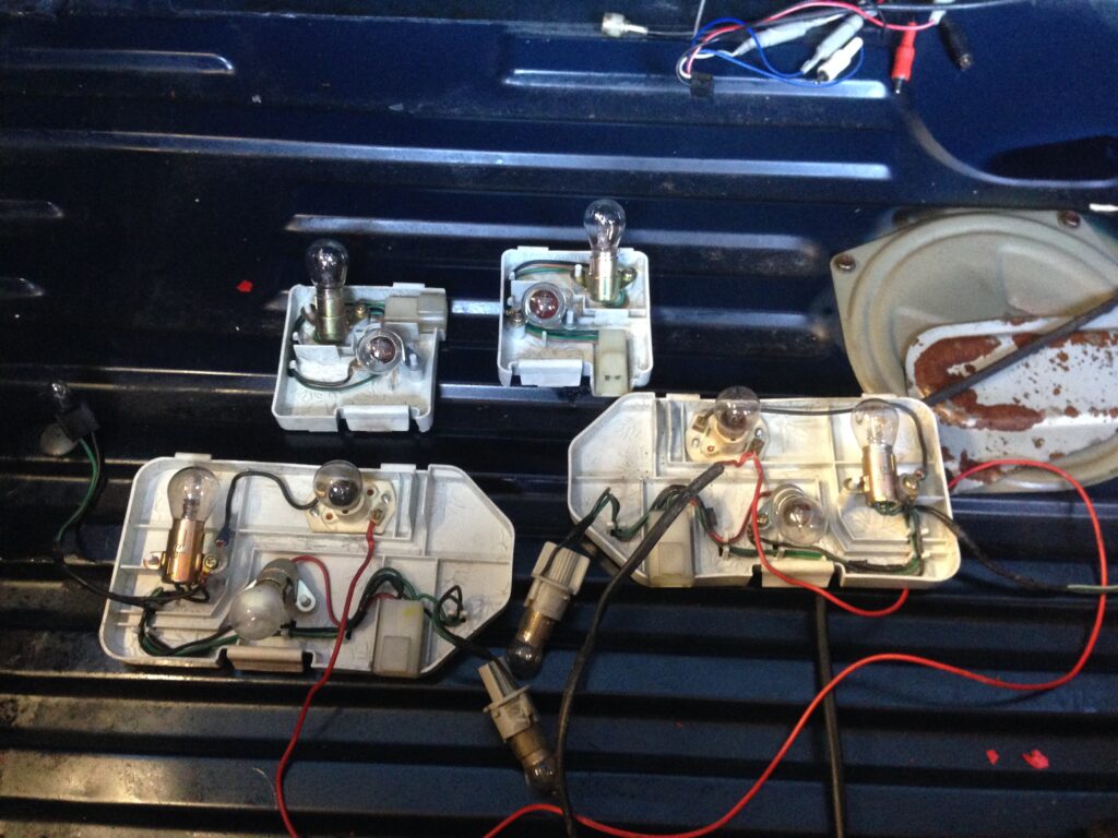 Nachdem ich die alten Lampen und alles was da so dran hing ausgebaut habe, nehmen Tommy und ich die Infinity M30-Lampen zur Hand und stellen fest, dass wir uns zu früh gefreut haben. Nicht nur, dass die Kabel und eingebauten Fassungen der Lampen überhaupt nicht zu dem Kabelbaum von Leo passen – der ja eigentlich identisch sein müsste – nein zusätzlich passen die Lampen auch von der Form her absolut nicht in die Front des Fahrzeuges. Sie stehen gute 3 Zentimeter über. Dann fällt uns noch auf, dass die Halter, in denen die Lampen verbaut sind, irgendwie aussehen, als hätte sie jemand mit Epoxidharz, Holzleim und Zeitungspapier selbst gebastelt.